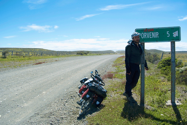 Now cycling in silence, we met an American cyclist who told us that the last ferry before Christmas was leaving in a few hours. Having laid down the gauntlet of trying to cover 35kms in 4 hours, and not wanting to spend Mel’s birthday in a fishing village, we fuelled up on plain white bread (having smashed the jam a few days previously, it was all we had), gulped down our water tainted with petrol and made it to Porvenir with an hour to spare, only to find that the ferry left 5 hours later!
