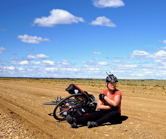 Crossing the border into Argentina, the map showed that we were due to reach Ruta 40, a road classed as “natural” by the locals. The road turned to gravel, and then 30km later, mud. Having successfully negotiated 40km or so, I was pedalling ahead and listening to dubstep, a genre of music that appears to be based upon the sounds of an industrial saw mill. As the music bashed and crashed, I heard what appeared to be a drawer of cutlery falling to the floor and a very faint “Khruuusssss!”. I turned around to find this: